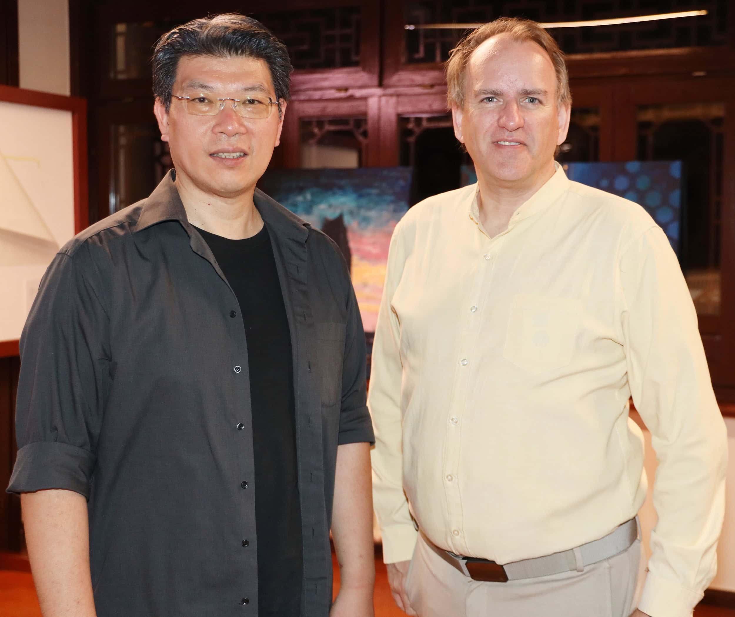 Diesen Sommer hat er gerade wieder eine große Einzelausstellung in Hamburg gehabt und davor auch schon vor fünf Jahren das letzte Mal. Er war auch bis vor Kurzem hier persönlich hier in Hamburg, Ansprechpartner für die Kunstwerke, die auf dem YAC ART & MUSIC-Event zu sehen waren, ist Qiuyi Chen, Geschäftsführer des Yu Garden.