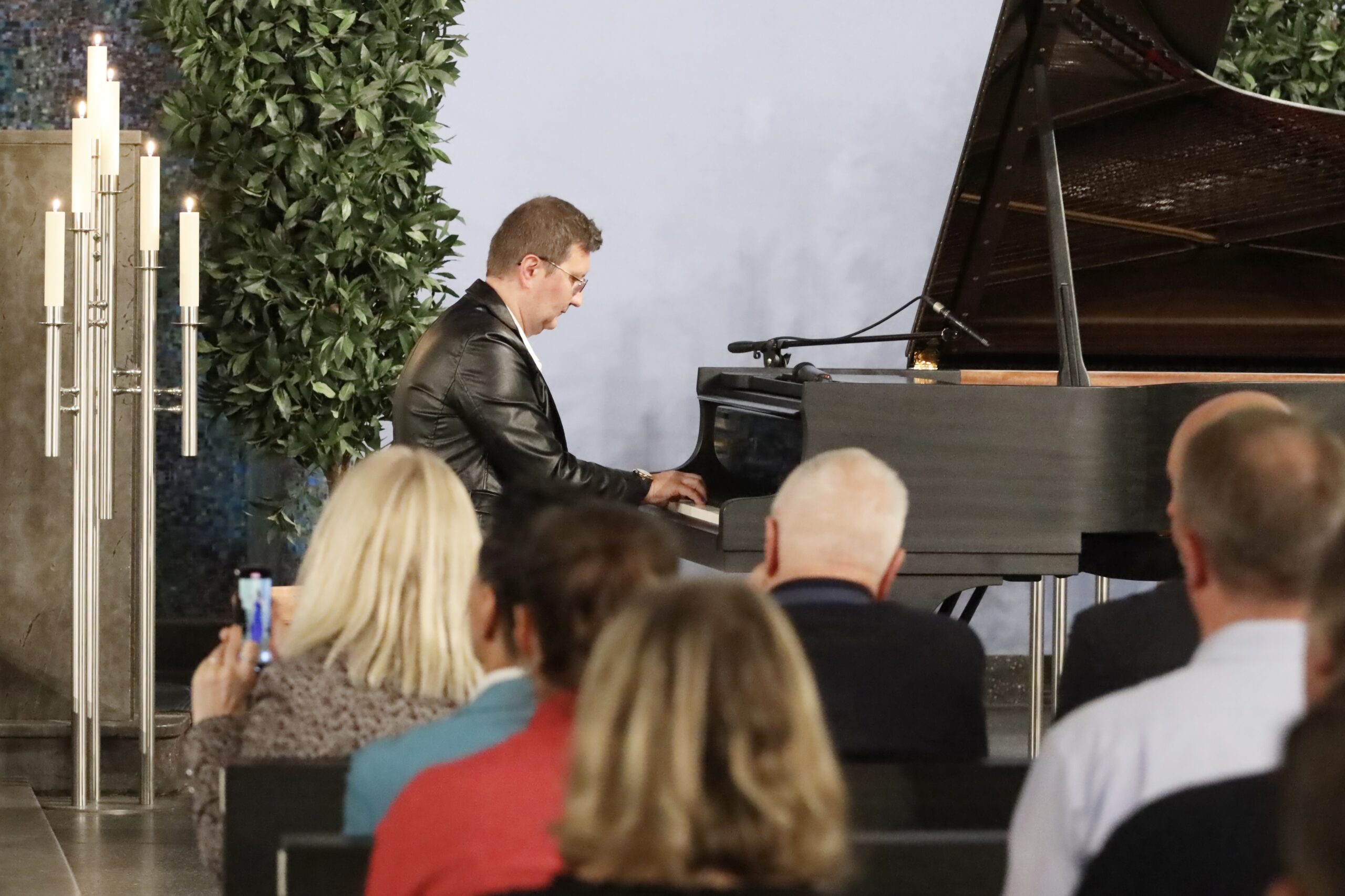 Schon beim Betreten der eindrucksvollen Halle spürte man, dass dieser Abend etwas Besonderes werden würde. Die ikonische Architektur, das farbige Licht der Glasfenster und die gespannte Erwartung des Publikums schufen eine feierliche Atmosphäre. Dazu kam eine Premiere: Zum ersten Mal erklangen in diesem Saal die Töne eines in Hamburg kreierten Steinway-Flügels, gesponsert und an diesem Abend feierlich eingeweiht.