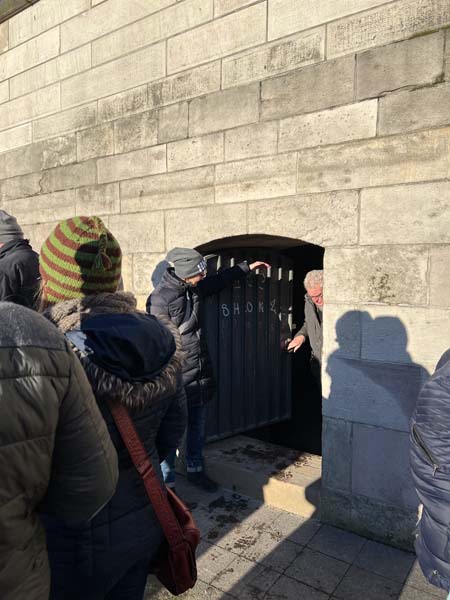 Die zertifizierte Stadtführerin der HMTG leitet die Gruppe vom Ernst-August-Platz über den Georgsplatz und die Aegidienkirche in die Altstadt und bis ans Leineufer. Vor einer unscheinbaren Metalltür unterhalb der Promenade erzählt Tamara Podesky von dem Räuber und Mörder Jasper Hanebuth, der ebenfalls in Hannover sein Unwesen trieb. Hinter dieser Pforte liegt der Hanebuth-Gang, ein Tunnel unter der Altstadt. Mit einem Schlüssel verschafft Tamara Podesky allen Interessierten Zugang. Mit einer Handytaschenlampe bewaffnet und gebückt laufend kann man einige Meter in den teilweise verschütteten Tunnel hineingehen.
