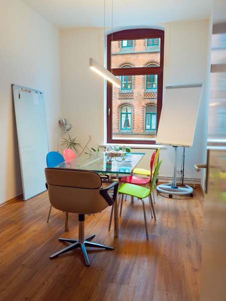 Die Gründungsidee für diesen Coworking-Space entstand im ersten Lockdown 2020 bei den Geschäftsführern Thorsten Herwig und Henrik Hahn. „Uns war es wichtig, keine ,Hightech-Beton-glänzende‘ Hülle, sondern Räume mit Charme und extreme Nähe zu jeglichem öffentlichen Nahverkehr anbieten zum können“, erklärt Thorsten Herwig. Der Standort Lister Meile/Weißekreuzplatz ist ideal, um diese Kriterien zu erfüllen. „Hannover bietet sich als Knotenpunkt zum Beispiel für ein Teammeeting an, bei dem die Teilnehmer in der Regel mit der Bahn aus allen Himmelsrichtungen kommen und den Bahnhof in Laufnähe sehr schätzen.“
