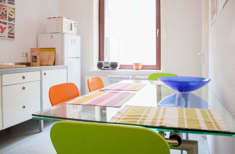Obwohl es der Name nicht verrät, möchte dieser Coworking-Space in der Südstadt mehr sein als nur Raum auf Zeit. „Ich denke, das Besondere an der raumzeit ist der sehr herzliche Service und freundschaftliche Umgang unseres Teams mit allen User*innen. Aufgrund unserer Unabhängigkeit können wir besser und einfacher auf individuelle Kundenwünsche eingehen“, erzählt die Space Managerin Carola Vogt und ergänzt: „Es geht hier eher familiär-freundschaftlich zu – und wir sind hundefreundlich.“ Der Space bietet neben 26 Private Offices auch 49 Desks, sowie 6 Meetingräume verschiedenster Größe. Jegliche technische Ausstattung sowie Workshopmaterialien wie Pinnwände, Flipcharts oder Moderationsmaterial dürfen ohne Mehrkosten genutzt werden.