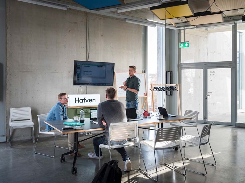 Der größte Coworking-Space in Hannover ist der Hafven mit Standorten in der Nordstadt und in Linden. „Hafven versteht sich als offenes Labor für visionäre Zukunftskonzepte, um das Leben von Menschen mit Hilfe smarter Lösungen besser zu gestalten und einen relevanten Mehrwert für Umwelt, Gesellschaft und Wirtschaft zu schaffen“, sagt CEO Karen Klauke. Insgesamt sind 1.200 Mitglieder in der Hafven-Community. Hier steht besonders das Gemeinschaftsgefühl im Vordergrund, so werden immer wieder Workshops, MeetUps oder auch Community Breakfasts veranstaltet. Dabei sollen die Nutzer*innen die Gelegenheit bekommen, sich gegenseitig kennenzulernen und Neues zu erfahren. „Hafven ist bereits seit der Gründung ein wichtiger Knotenpunkt der niedersächsischen Coworking- und Startup-Szene“, erklärt Karen Klauke. „Hier kommen Gründer*innen, Mittelständler, Konzerne, aber auch Vertreter*innen aus Politik und Verwaltung zusammen, um im Kontext von Digitalisierung, neuen Technologien, Business Innovation, nachhaltiger Transformation, New Work und Kulturwandel in den Austausch zu treten.“