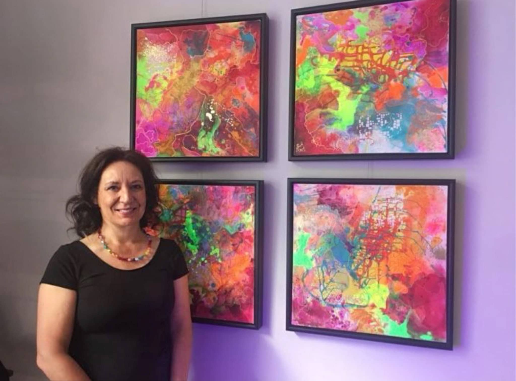 Gisela Grünling vor ihren Werken ab dem 12.05. 16:00 Uhr in der GlowArt Gallery im Leine Center Laatzen