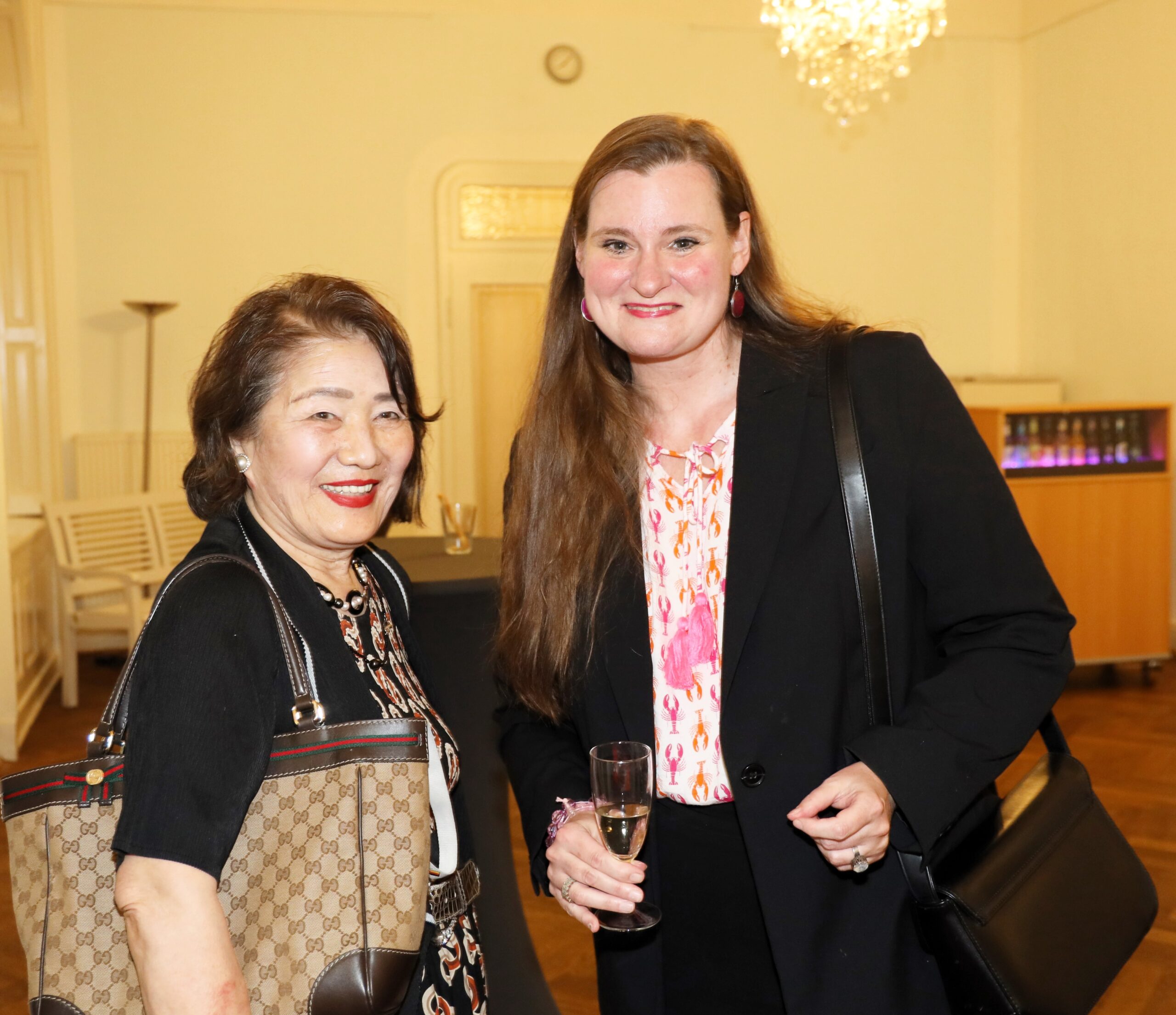 Hao Rao (Mitte) begeisterte mit seiner Tastenkunst auch die anwesenden VIP-Gäste (v.l.): Eiko Hashimaru-Shigemitsu (Präsidentin der Deutsch-Japanischen Gesellschaft), Generalkonsul Antonio Correa (Chile), Tania Narvaez (Ex-Generalkonsulin Ekuador), Joachim Ulrich (Honorargeneralkonsul Costa Rica), Vivian Li (Managerin von Hao Rao), Songbao Jin (Stellvertretender Generalkonsul China), Shinya Kurata (Klavierstimmer Kawai), Ji Zhang (Konsul China) und Anne-Sophie Desrez, Markenbotschafterin von Shigeru Kawai © CETIN YAMAN/YPA