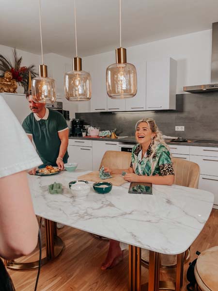 Als die Anfrage für das Backen hineintrudelte, hatte ich ehrlich gesagt gar nicht lange nachgedacht. Ich wusste zwar, dass wir keine Backprofis waren – Sascha hat noch nie gebacken und was das Kochen betrifft, bin auch eher ich diejenige, die den Löffel in der Hand hält. Und trotzdem nahm ich die Chance dankend wahr. Wilde Rezepte ausprobieren und dann auch noch am Stiel, hörte sich total spaßig an und so ging es auch ziemlich schnell zur Sache. Ohne einen Schimmer oder Gedanken im Hinterkopf stürzten wir uns in den aufregenden Tag und soll ich etwas verraten? Wir hatten richtig viel Freude!