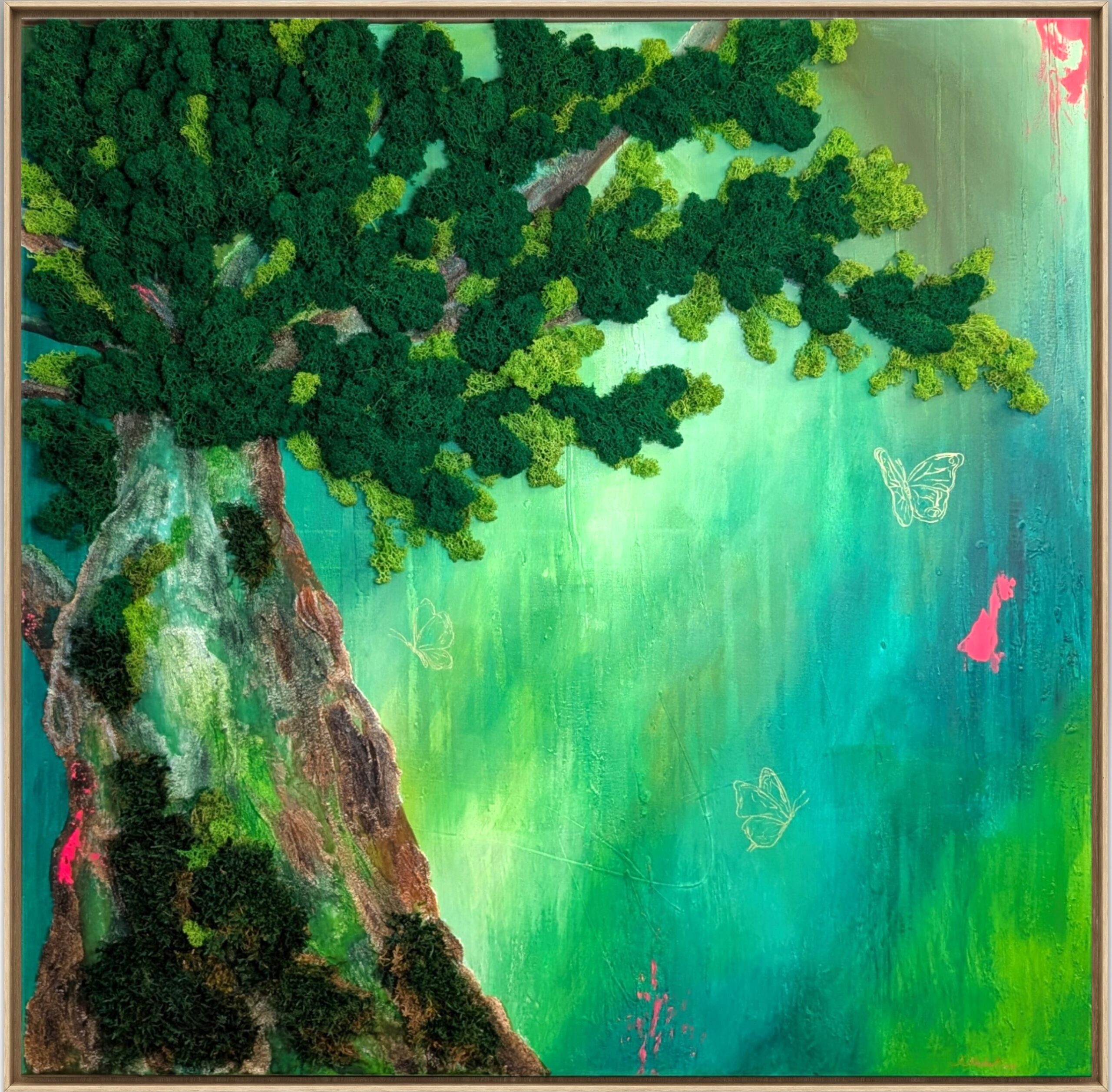 Sara Schuberts Arbeiten bewegen sich seit Jahren an der Schnittstelle zwischen Ästhetik und Haltung. Die Künstlerin verbindet abstrakte Malerei mit figurativen Naturmotiven, oft Tiere, Pflanzen oder organische Strukturen. Was auf den ersten Blick harmonisch wirkt, offenbart bei genauerem Hinsehen eine Spannung: zwischen Schönheit und Verlust, zwischen Kraft und Verletzlichkeit. „Wurzel der Hoffnung“ treibt diese Auseinandersetzung weiter – konzentrierter, klarer, konsequenter.